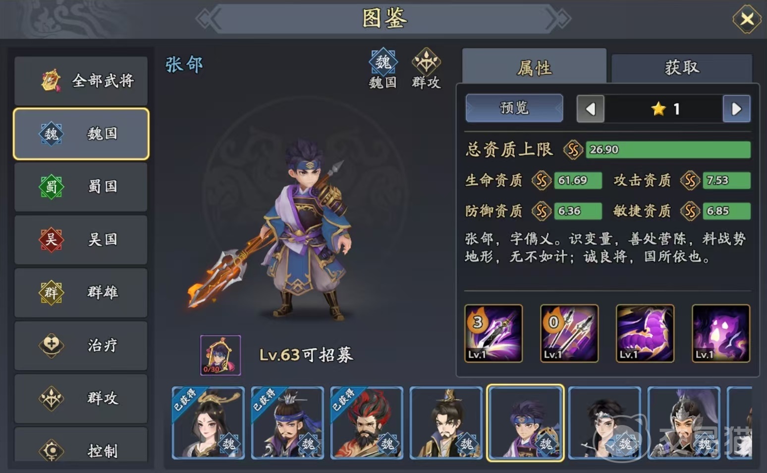 在阵容搭配方面,队友直接选择张春华,张郃,杨修和典韦。选择张春华和张郃的原因非常简单,因为这两个武将都有中毒效果。张春华自身的必杀技能够对三个随机目标造成伤害,并有几率添加中毒状态。张郃也是如此,张郃的必杀技伤害的目标是敌方横排全体,有几率造成中毒,只要有这三人的中毒技能使用出来,很快对方全体就会被全部覆盖。这样削弱了防御,其他输出也会提升。