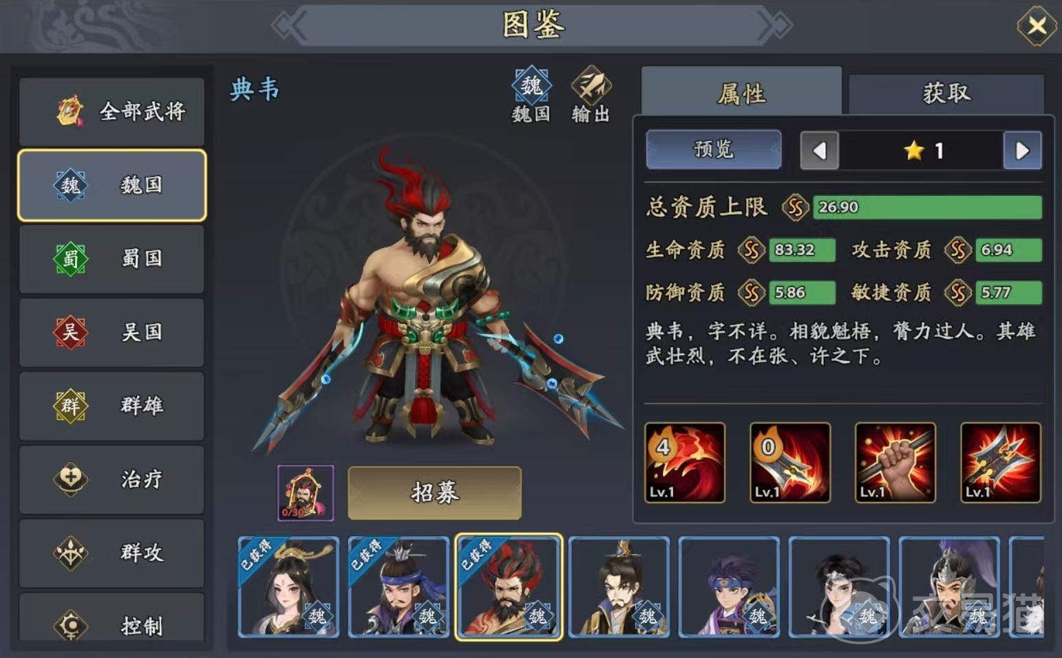 至于选择杨修的原因,就是利用他的技能状态所带来的鸡肋效果,鸡肋能够使对方受到的持续伤害效果提升,这样中毒效果就可以更好地发挥作用了。最后一个典韦,虽然带来的不是中毒效果,但是他的技能可以打出可观的单体伤害,并且能够附加流血,流血也是属于异常状态之一,可削弱对方的攻击和受治疗效果,非常有用。