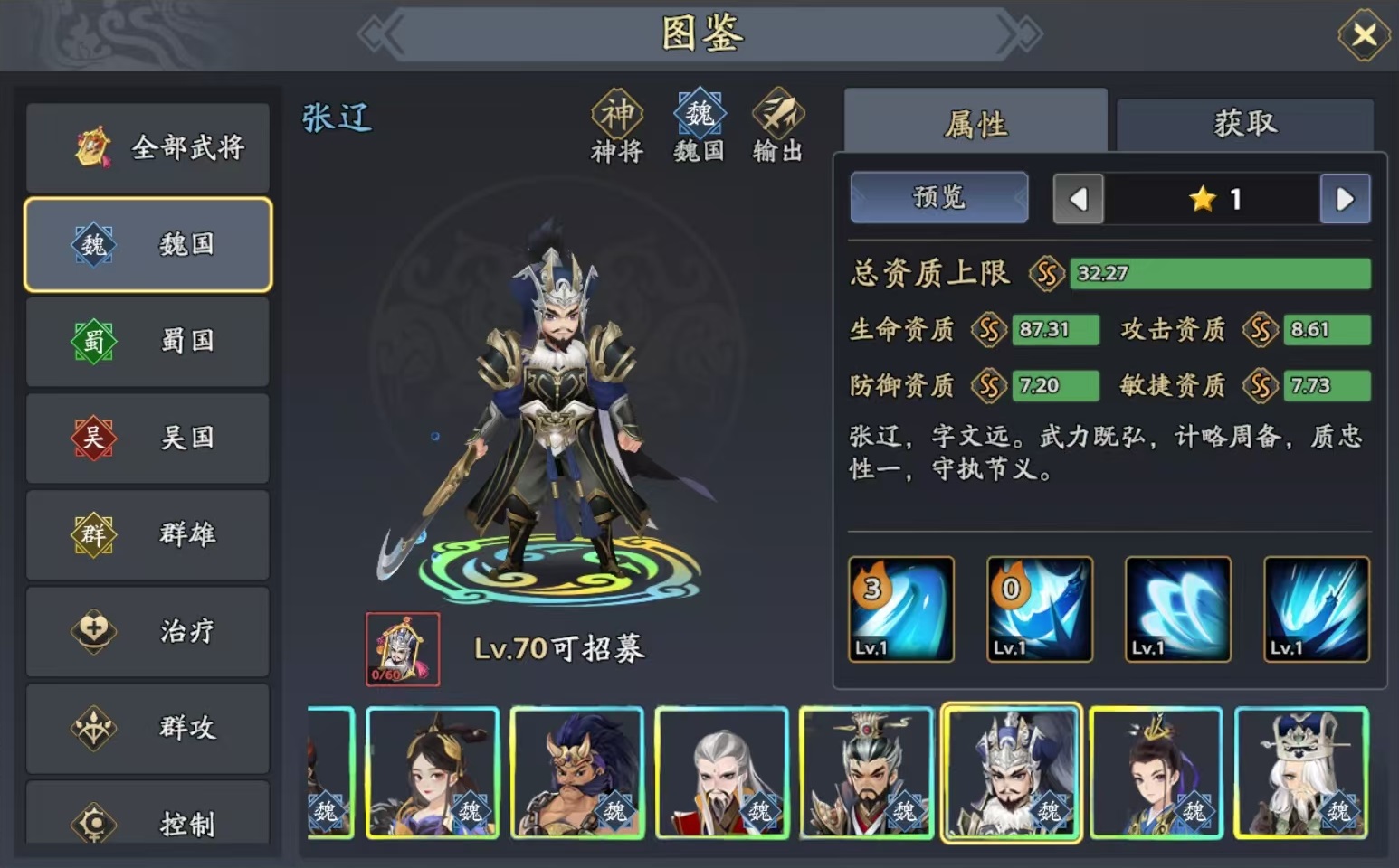 甄姬在加点方面当然是全武力,这样攻击属性更高。阵容搭配方面,最佳选择是以魏国阵营的神将为主。肉盾选择夏侯敦,辅助选择司马懿,群攻选择曹操,另外还可以再搭配一个输出张辽,这样就很全面了。张辽输出特点和甄姬有所不同,张辽在攻击单个目标时,可以恢复自身生命,并附加额外的暴击几率,在单体输出方面非常暴力。曹操是属于群攻类型,可对敌方全体目标造成伤害,在造成伤害时还有几率触发额外状态。