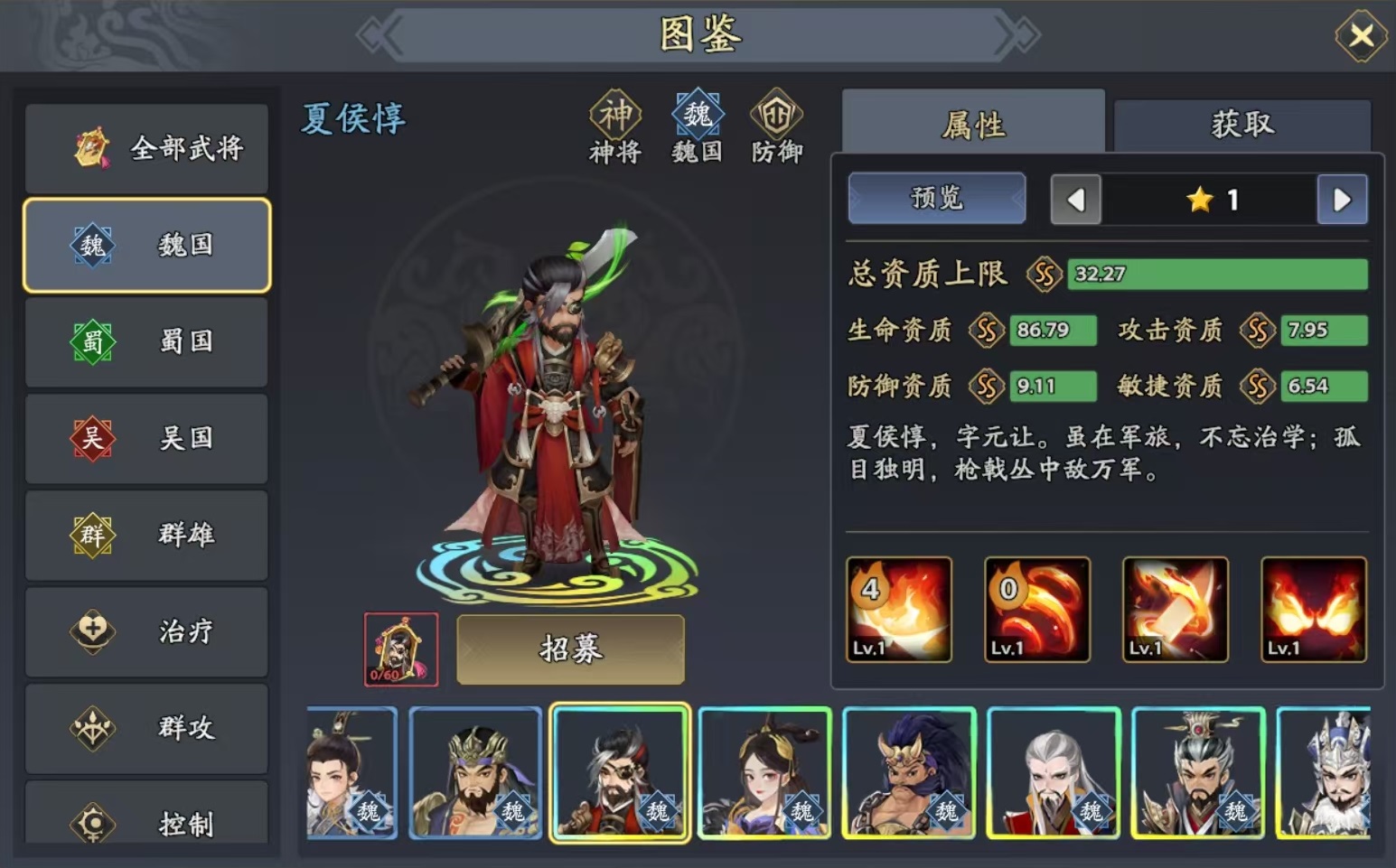 司马懿是这套阵容中的辅助,利用自身技能可为自身添加鬼才,虽然司马懿对于整个阵容并没有太多治疗和增益效果,但是对敌方有着非常多的限制,这样也可以帮助队伍打出更高的输出。夏侯惇利用自身的技能在前排吸收伤害就可以了,因为夏侯敦有治疗自身以及防御提升状态,所以即使阵容没有奶妈也能很好的存活。