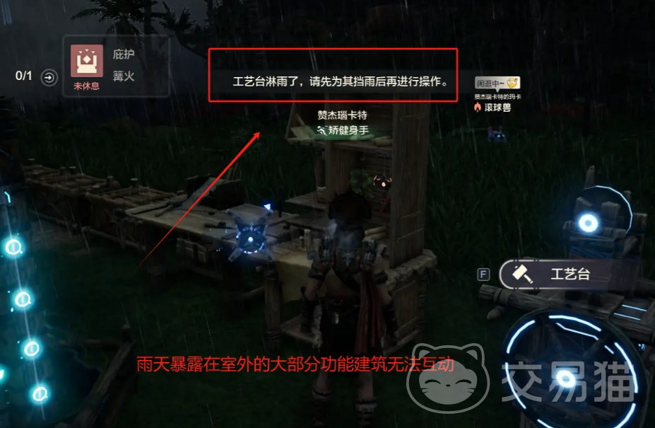 如果大家在建造家园时,不想过于消耗时间的话,也可以试一下简单遮雨的小技巧,大家只要在对应的物品上方建造一个简单的屋顶结构,就能挡住雨水完成相应互动。