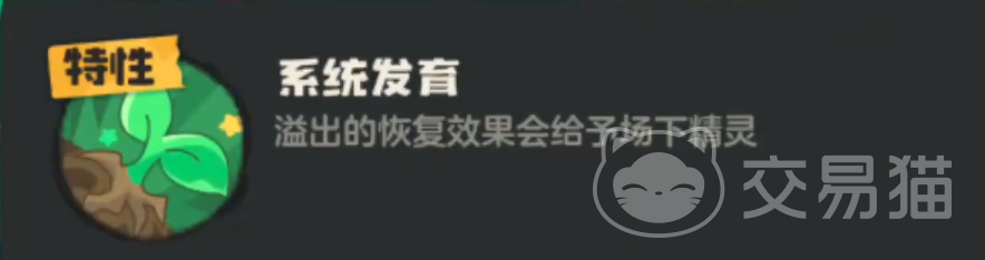 春花兔是草系的精灵,她的特性“系统发育”是溢出的恢复效果可以给予场下精灵,而且草系的回血技能她都是可以学习的,可以说是天生的奶妈圣体了。而且不光是草队,其它的体系也可以加入进去回血。
