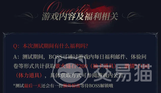 上膛测试已经开启在这次测试的阶段,所有人都可以通过填写每日问卷或者是每日查收邮件的方法去获取。总共可以获得200个欲火燧石,这就是一种抽卡道具,除此之外玩家还可以获得100个激情体力。