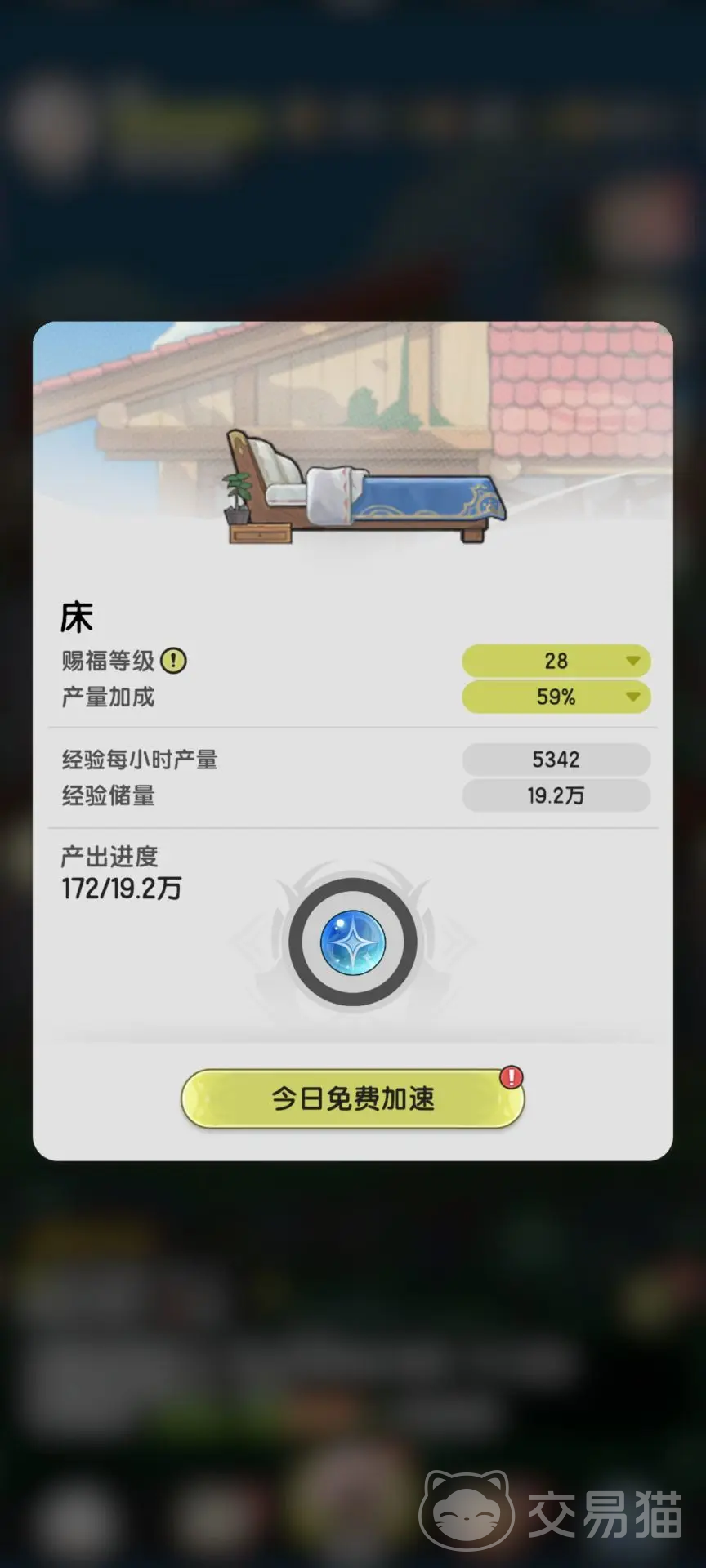 家园床,这是挂机经验获取的方法,要记住每天床的加速时间,一定要留着到将当日的地图开完,完成所有的任务,副本打完之后再去开启,这样鞥能让经验和资源的获取达到最大化,女神像开启之后,能增加产出的比例。