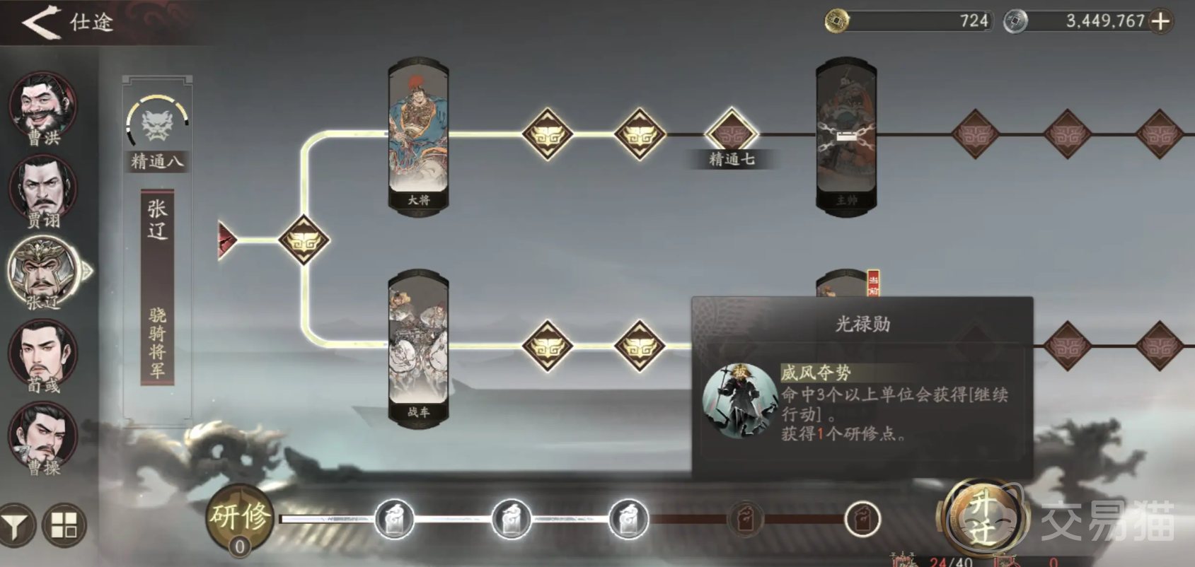 作为超品的武将,张辽是非常推荐新手朋友去选择和培养的强力武将,性价比非常的高,看着似乎像战士,其实是刺客骑兵,攻防兼备的存在,二阶就迎来了质的飞跃,命中三个单位以上就能继续行动。天赋“威声夺势”,主动攻击不会触发目标的反击,单次技能如果命中2个目标以上,就能获得持续1回合的无法选中效果。主计策“当锋摧决”,对目标造成物攻为140%的伤害,若目标身后有单位则会一直位移并造成伤害,每命中1人伤害衰减20%,最大可对4人造成伤害,并停在最后一个敌人身后,如果遇到障碍或者超出最大限制人数,就会退回原点。