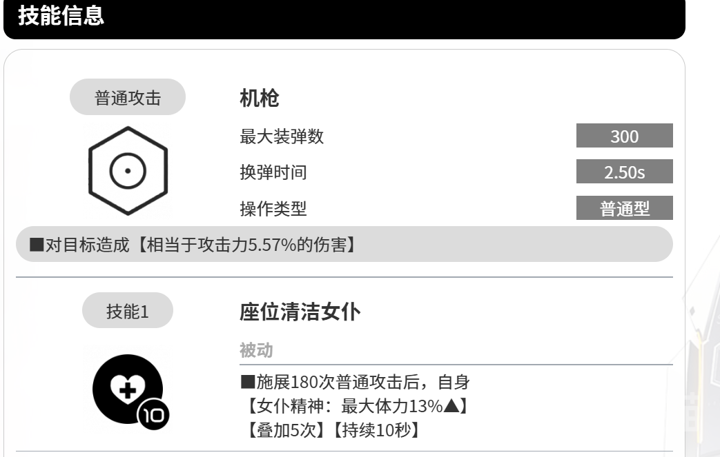 索达的被动技能座位清洁女仆施展 180 次普攻后,自身获女仆精神效果,最大体力提升7.15,最多可叠加5次,持续10秒,这是索达重要养成点。战斗中不断触发该效果,叠加后的体力提升能大幅增强索达生存能力,使其更坚韧,能承受更多攻击,为团队提供支持。该被动也鼓励玩家多用索达攻击,积累普攻次数获取更大收益。