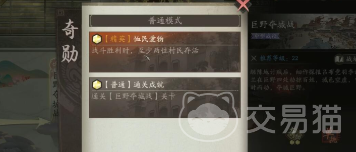 三国望神州巨野夺城战任务怎么完成?在《三国望神州》的诸多战役关卡中,巨野夺城战以其特殊的任务设定和较高的完成门槛成为玩家争取奇勋成就时必须攻克的一关。该任务不仅要求击败敌方两名核心武将李易峰和薛兰,还要确保两位普通村民在整个战斗过程中不被波及。这种“兼顾进攻与守护”的战斗节奏,对玩家的整体排兵布阵、实时应变能力和角色搭配有着较高的要求。因此,若想顺利完成任务并斩获全部奖励,就必须对战场态势有全面把握,稳中求胜。