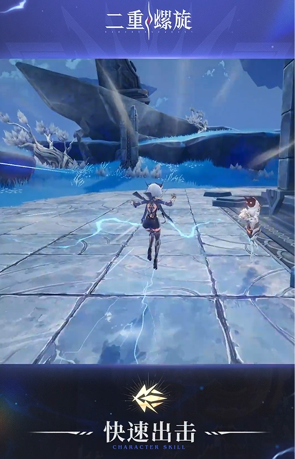 接着还有个技能叫作快速出击,向前方快速跳跃,对沿途敌人造成雷属性伤害。若电能充足,可额外消耗电能提升伤害与速度,兼具机动性与爆发力。所以更加适合后手使用,毕竟刚开始电能不够充足,用来一追击或者逃命都是不错的选择,适合后手进场。