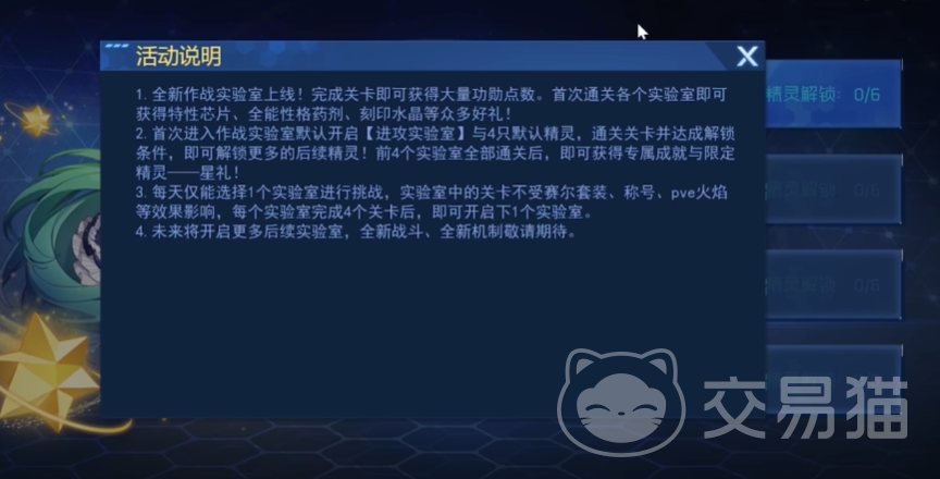 当玩家全部通关4个实验室,便能解锁专属的限定精灵星礼,每个实验室的关卡不受赛尔套装、称号以及PVE火焰等效果影响,每个实验室完成4个关卡后,即可成功开启下一个实验室,后续还会有更多实验室和全新的战斗机制开放,玩家成功完成关卡能够获得功勋点数奖励,首次通关每个类型的实验室,还能得到各类奖励。