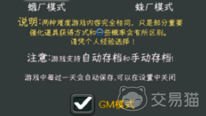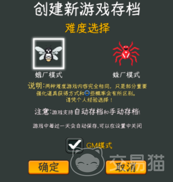 玩家想要开启gm的时候,先要进入到游戏页面,然后就需要创建新游戏存档,这时候对于玩家来说会涉及到两种模式,一个就是鹅场模式,还有一种就是蛛场模式。