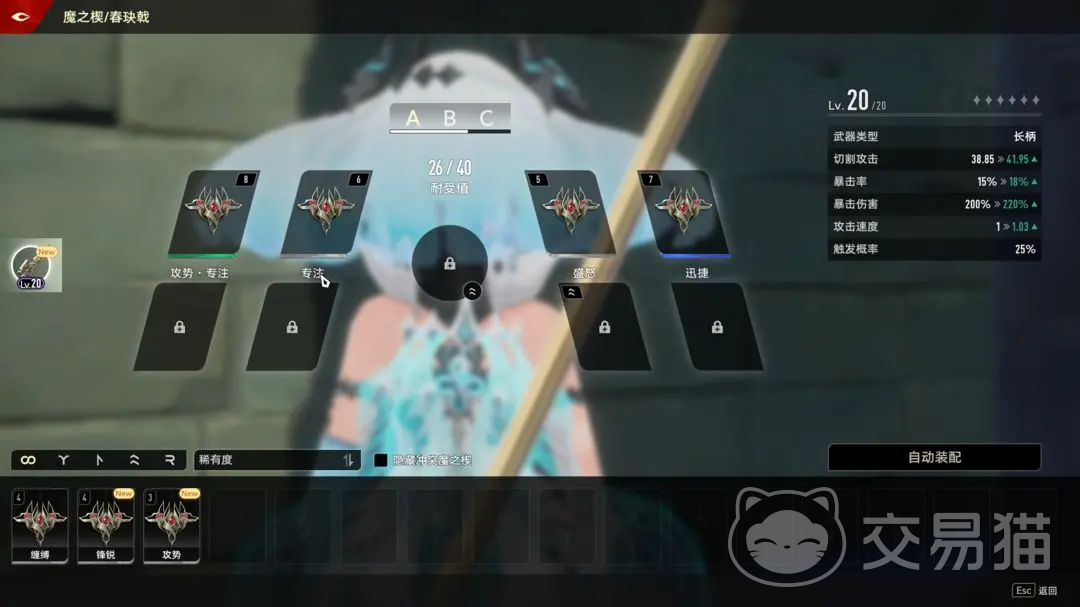武器的培养有魔之楔的设定,其实简单可以理解为武器拥有名为,可以通过镶嵌的方式,增强武器的属性,最多能镶嵌9个,品质越好,带来的属性提升效果越明显,除此之外,还能去获得对应资源对武器进行熔炼,每一次熔炼的提升效果都是非常明显的。