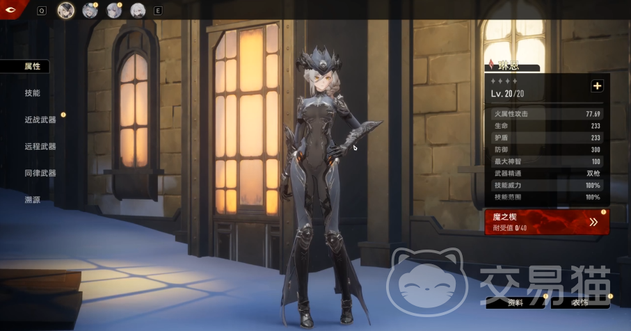 2技能”火药酬宾”,将远距离武器切换成另一种,此时只能使用技能和射击,而且不能移动,展开射击时,对面前的所有敌方打出伤害,射击持续时间内,自身每隔0.2秒获得1层攻速提高效果,最多叠加35层,使用该武器期间,自己受到伤害不会产生僵直,同时持续消耗神智,神智变为0时,或者再次使用时手绘武器。