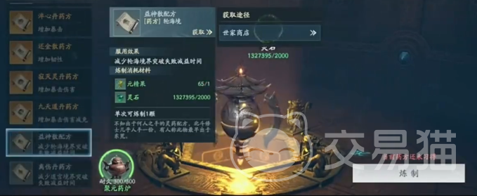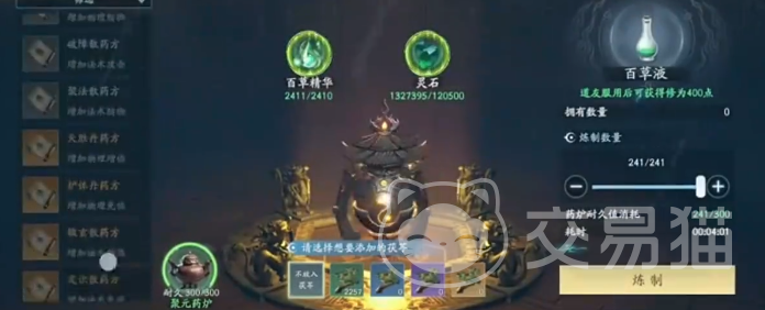 丹药大致可以分为三类,分别是养成、增益和辅助,养成丹药顾名思义就是用来养成角色的,主要有百草液、定魄丹、益神散和离伤丹等,其中百草液的作用是提升角色的等级,除了可以自己炼制外,还能参与荒塔pve闯关玩法来获取。