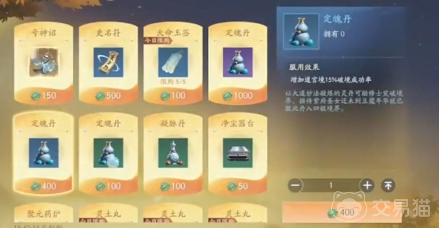 它的获取途径主要是靠仙玉商店获取,增益类丹药更多,有能增加物理攻击的破厄丹、可以增加法术攻击的破障散等,大家在使用前可以先点击一下,了解丹药的具体加成效果,再给适合的手下角色使用。