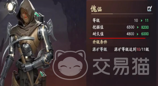 首先我们要知道源矿的挖掘模式,打个比方例如我们现在有6个10级的傀儡,打开它们的详情界面能看到挖掘值在6500,耐久值是是4800,在安排它们去挖掘星辰陨铁矿脉时,能看到若傀儡的挖掘总价值在1000。