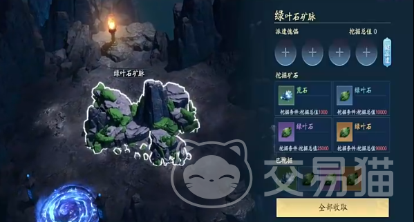 在法宝培养界面大家能看到一个精炼,里面所需要的材料就是在源矿中寻脉获取的,这个矿图可通过势力捐赠商店来获取,因为有时间上的限制,所以在采集这类的时候,能放多少傀儡就放多少,尽可能多的获取资源。