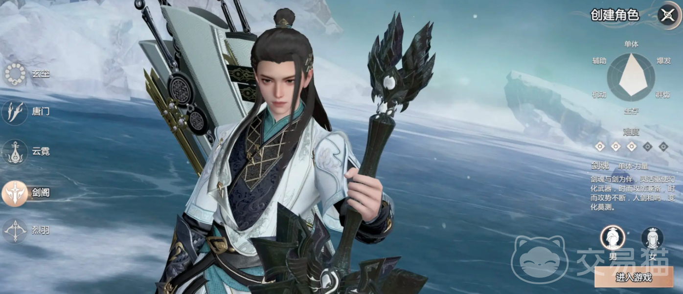 剑阁以外功近战著称,身背剑匣,匣中藏有三柄神兵,分别幻化自剑灵,变化万千。重剑“巨阙”力大无穷,不仅能震晕敌人于一击之间,更能化作坚盾,为自身抵挡狂风暴雨般的攻势;双剑“干将莫邪”配合出招如行云流水,持续输出如刀切水流,极致精准与效率兼具;而快剑“承影”则如疾风骤雨,身形灵动,斩敌于方寸之间的同时还能迅速脱离战圈,控制与输出并重。战斗中,剑阁通过攻击积聚真气,在气机贯通之刻,人剑合一,出招无形无迹,变化之道尽在一念之间。