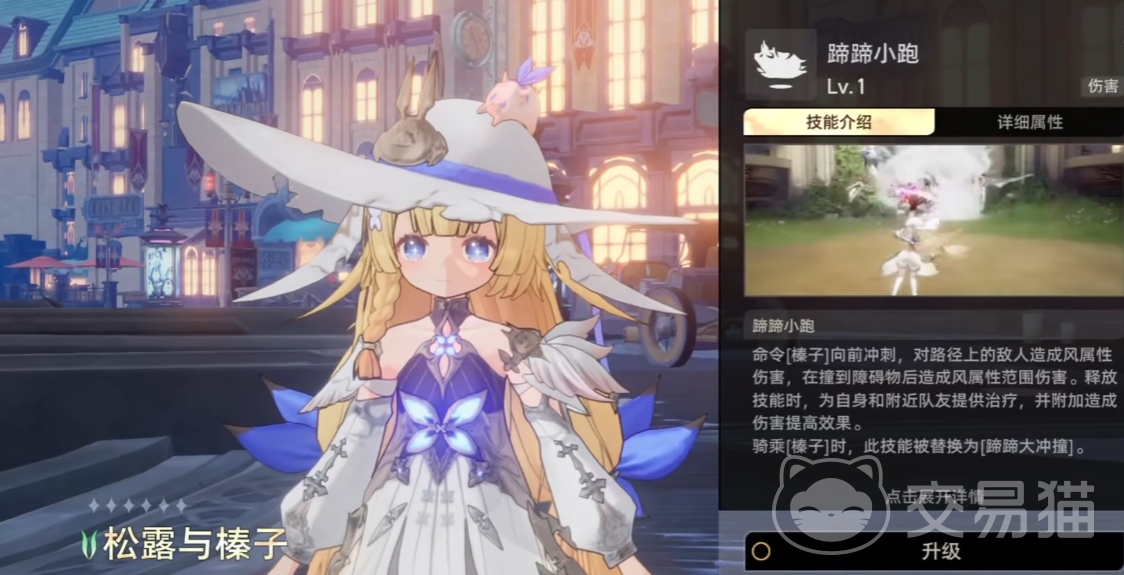 松露与榛子1技能“蹄蹄小跑”,可以命令小猪向前冲刺,对路径上的敌人造成风属性的伤害,在释放技能时还能对自身和附近的队员提供治疗,并附加伤害加成效果。如果释放技能是在乘骑状态时,技能升级为“蹄蹄大冲撞”。
