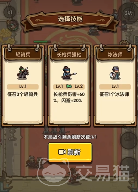由于本关BOSS貂蝉不吃冻结效果,所以前期需快速获取控制牌来限制其他怪物,以保障输出环境,此时有两种较好的选择,一是将民兵转成枪兵,枪兵具备一定的控制能力,二是选择 1 级风法,风法也能提供一定控制效果,不过无论选择哪种控制牌,在获取后无需继续强化,应将主要资源与精力转向弓兵,将弓兵相关强化牌拉满,依靠弓兵的高输出灌死BOSS貂蝉,此外枪兵的易伤牌可使敌人受到的伤害增加,闪避牌能提升枪兵自身生存能力,从而提升前排质量,在战斗中也是不错的辅助选择。