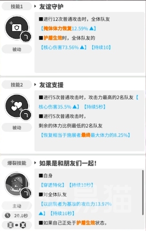同时体力最低的队友会恢复最大体力的5%,这一补血效果虽然看似不多,但在关键时刻却能够挽救队友,这种既能补伤害又能增加血量的设计,使得娜嘉的二技能被动在团队战斗中起到了关键的平衡和支援作用,再来说说娜嘉的主动技能,也就是三技能爆裂技能,这一技能的独特之处在于它能够作用于自身,将娜嘉的普攻进行穿透特化,而且在释放爆裂技能后,还能够为全体队友恢复10%的攻击力。