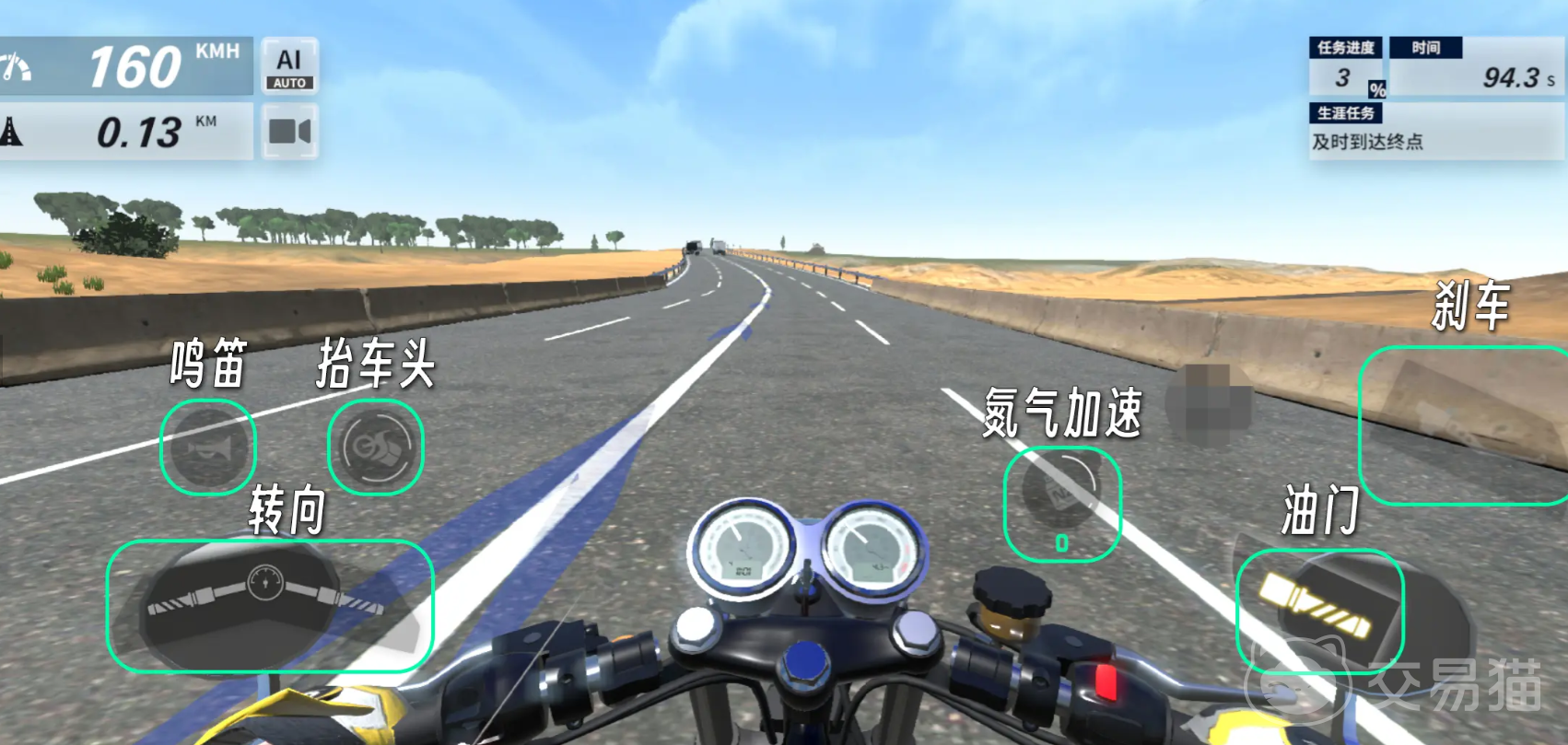 首先基本操作除了有加速的油门、减速的刹车和转动方向的转速外,还可以用氮气加速、抬车头和鸣笛,氮气加速是一种进阶加速功能,抬车头可以帮助规避掉路上会出现的减速带,但需要注意使用的时候无法进行转向。