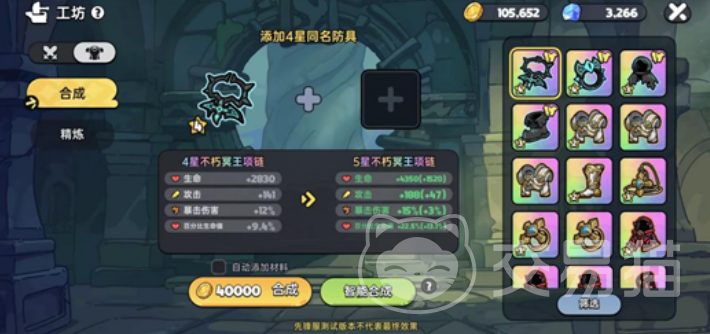 至于防具的部分,合成和精炼是最重要的环节。防具合成是提升装备星级的方式,通过合成,你可以将相同星级的防具进行合成,逐步提升其星级和属性。每次合成,不仅仅是提升防具的基础数值,还能解锁更多的词条效果,增强防御力和耐久度。在合成过程中,要特别注意防具的星级和属性的匹配,合成高星防具虽然消耗较大,但带来的战力提升却是相当可观的。