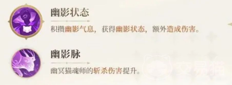 在游戏中,幽冥灵猫涉及到的幽冥方面的技能其实是比较多的,比如它可以实现幽冥影分身,施展之后可以存在多个,这样能够有效的减少继承方面的属性,在释放的时候还会形成残影标记。另外幽冥灵猫的核心技能之一是幽冥附体。如果幽冥灵猫施展了这个技能,那么它所对应的魂师将会进入到引擎的状态。