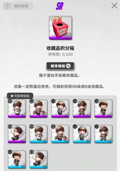第一种手段是,玩家在游戏内取得收藏品的积分箱,在收藏品积分箱内,玩家有一定概率可以获得SSR级别,亦或是SR级别的收藏品,这取决于积分箱的具体等级,积分将在游戏内可以通过商店购买,亦或是完成每日任务,或活动任务来获取。