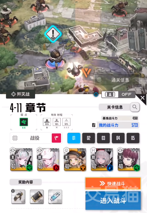 作为一个带有一定塔防属性的射击游戏,每个玩家都可以操控二次元少女,在阵地前方不断使用枪械攻击对手,这种设定能减弱大量的对战压力,同时也让游戏变得更有趣味性,作为一个设定比较轻松的射击游戏,玩家可以选择跳过战斗,但是想要达成这一目的是有一定要求的,游戏里暂时只有竞技场可以跳过战斗,参与其他的挑战,玩家需要完整的参与整场对战。