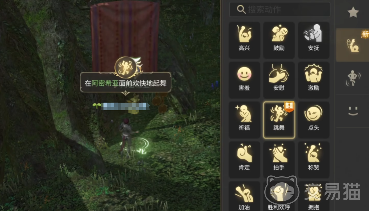 如果大家想要跳舞的话,那就可以直接点击跳舞的情感动作,就会朝着前方的人物跳舞。因为有一些任务要求大家在NPC面前做出一些情感动作,例如跳舞。这样就可以完成任务,并提升彼此的好感度。另外还有一些日常好用的动作,例如再见、大笑或者悲伤,都能在这找到。