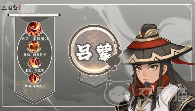 鉴于该被动技能在战斗中的重要性和实用性,玩家在技能加点时,务必要将其点满,除了上述被动技能外,吕蒙还有一个强化效果的被动技能,这个技能可以让他的优先出手效果多次叠加,敌方单位所受到的各种负面状态会更加明显,例如移动速度会更慢、防御力会更低等,而且还有一定的伤害减免提升效果,时间也会持续三个回合。