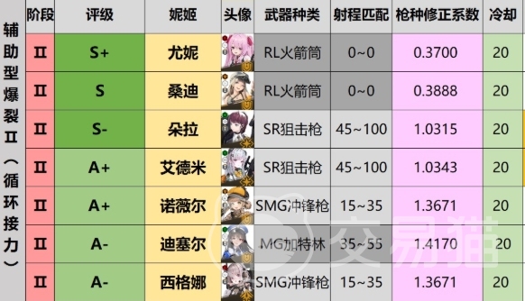 接着是爆裂2类角色,朵拉的减CD能力在配队中如果没有像丽塔这种自带减CD角色的情况下,就显得格外有用了,能够弥补团队在技能冷却方面的不足,让技能的释放更加频繁,艾德米有着加速换弹以及回血的能力,尤其适配爱丽丝、红莲这种在战斗中有着大量时间用于换弹的角色,其持续回血能力更是在国服新增相关内容后,对普丽瓦蒂、鲁德米拉、艾菲涅尔等角色有着极大的提升作用,能够改善整个配队的续航和作战能力。