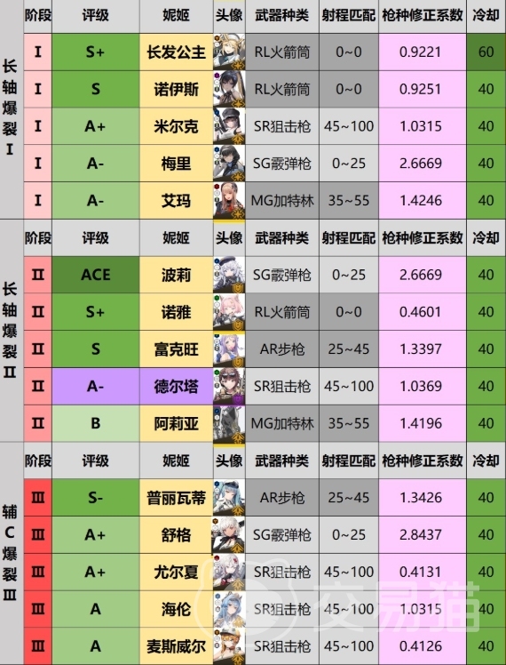 在胜利女神新的希望这款游戏里,角色依据爆裂技能被划分为1-3这三类,每一类角色在整个游戏的战斗体系当中都有着不可或缺的地位,胜利女神节奏榜一览当中大家可以看到自己可选的有哪些角色,想要从中择优搭配,构建出最适合自己的强力阵容的,接下来可以查看这些角色的能力是什么样的哦。