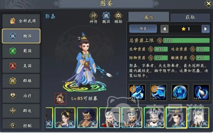 荀彧则是一位偏向进攻类型的辅助角色,他的技能在对随机两个目标造成伤害后,有一定几率降低目标的怒气,使得敌人的技能释放节奏被打乱,同时还有可能对目标造成伤害降低等负面状态,这一套阵容在属性加成方面相互配合上面还是很好的,既有强大的防御核心夏侯惇在前排抵御伤害,又有曹操和张辽在后方提供稳定的输出,再加上荀彧和郭嘉的辅助支持很多场合都可以用。