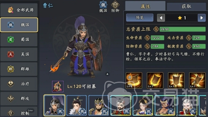 三国志异闻录曹仁阵容推荐 三国志异闻录手游曹仁加点技能介绍