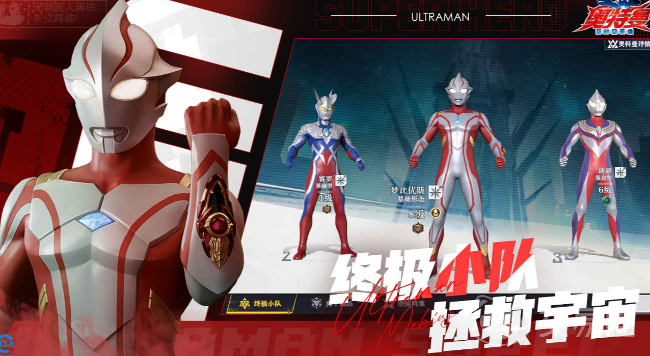 在此期间,玩家会不断结识一些强大的奥特曼,例如梦比优斯、迪迦、赛罗等等,最终和这些奥特曼结为伙伴,化身成为终极小队,参与到一场宇宙战役内。