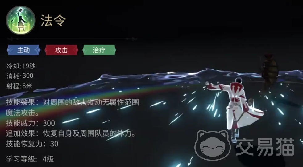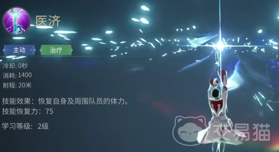 她的“全大赦”能增加自身以及周围队友受到的治疗效果,在团队血量比较危险的时候,配合其他的群疗技有不错的效果,她的“医济”是群体治疗技,能恢复自身以及周围队友的体力。