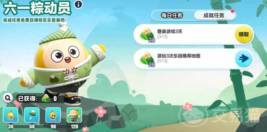 本次蛋仔派对的活动将会从5.30号开始。首先第一个活动是六一粽动员。在活动开启之后玩家们可以在主界面查看此活动的完成方法和活跃任务说明。玩家们在完成这些任务之后便可以去领取外观粽乐乐套装,除了这个套装以外,玩家们还可以获取到小粽腰包,或者各种有趣的动作。