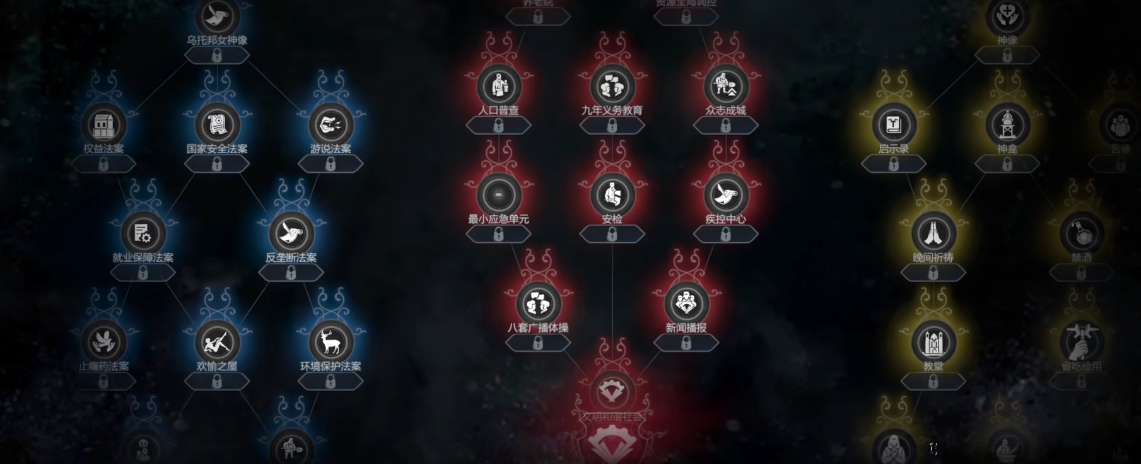 3、律令的颁布。在这个游戏中不仅要解决生存的问题,还要兼顾居民的管理。在赛季中还会有任职期期间管理者的考核,发布不同领域的律令能帮助玩家更好的管理居民。在旅行玩法中分为多个板块,涉及教育、医疗、食物、工作等多个维度,每个板块的颜色不一样,律令会根据等级来陆续解锁。好的律令能增加居民的幸福值。幸福值越高,能够招募的幸存者也就会越多。
