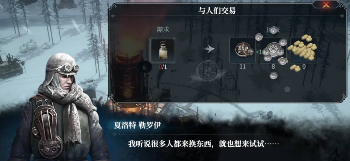 4、交易。在游戏中虽然没有交易玩法,但是玩家们产出的各类生存道具同样也是居民们的需求,所以在游戏中会不定时出现居民npc前来交易,完成和他们的交易能获得货币道具。