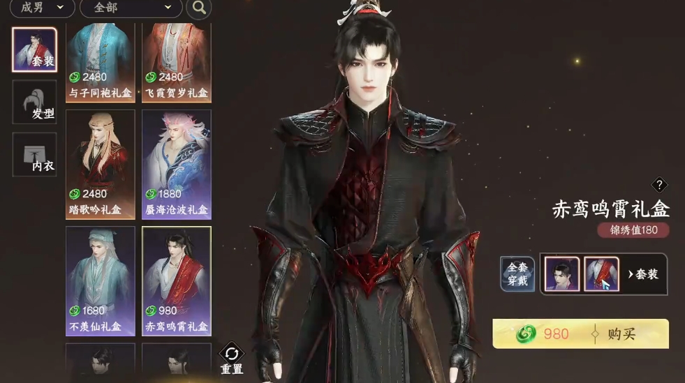 7、不羡仙礼盒。这个价值260点锦绣值,需要1680灵玉值。这个通过礼盒套装可以让玩家获得套装系列的服饰等。