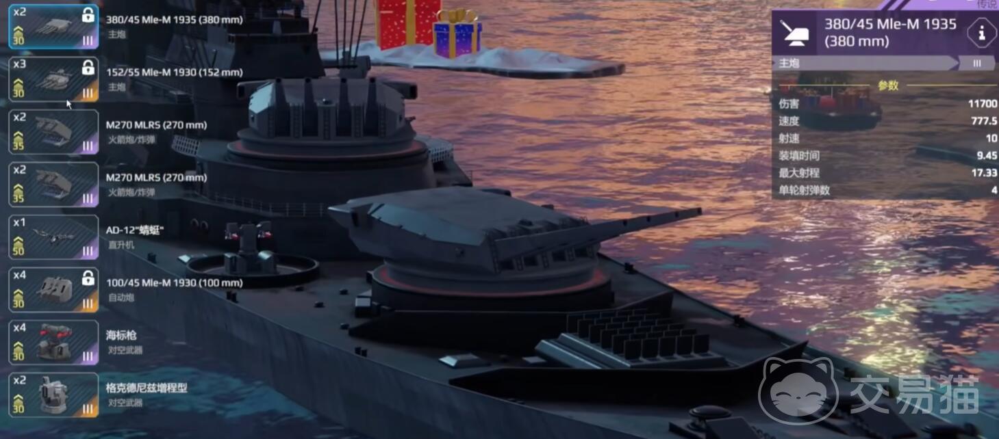 主炮必选380毫米主炮,搭配152毫米副炮补足中距离火力。火箭炮推荐两组RUR-5“阿斯洛克B”反潜火箭,能一次覆盖800米范围的水下目标。防空系统以“紫菀-30”为主,搭配“响尾蛇R440”和“海拉姆”形成三层拦截网,手动锁定敌机时优先打直升机和小型导弹。直升机选择“科曼奇”,反潜时投掷声呐浮标标记潜艇位置。