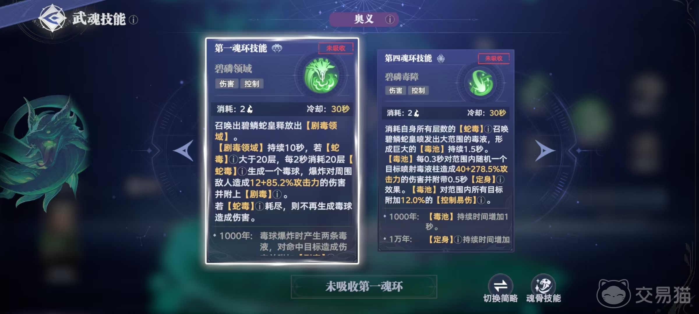 最关键的一点是,目前游戏最流行的流派中,都没有出现碧磷蛇皇的身影,它的中毒效果以及控制,很难融入目前的主流流派中,所以并不是非常推荐大家养成的一个角色。但是在前期阶段还没有形成流派时,这个武魂可以先使用一段时间。