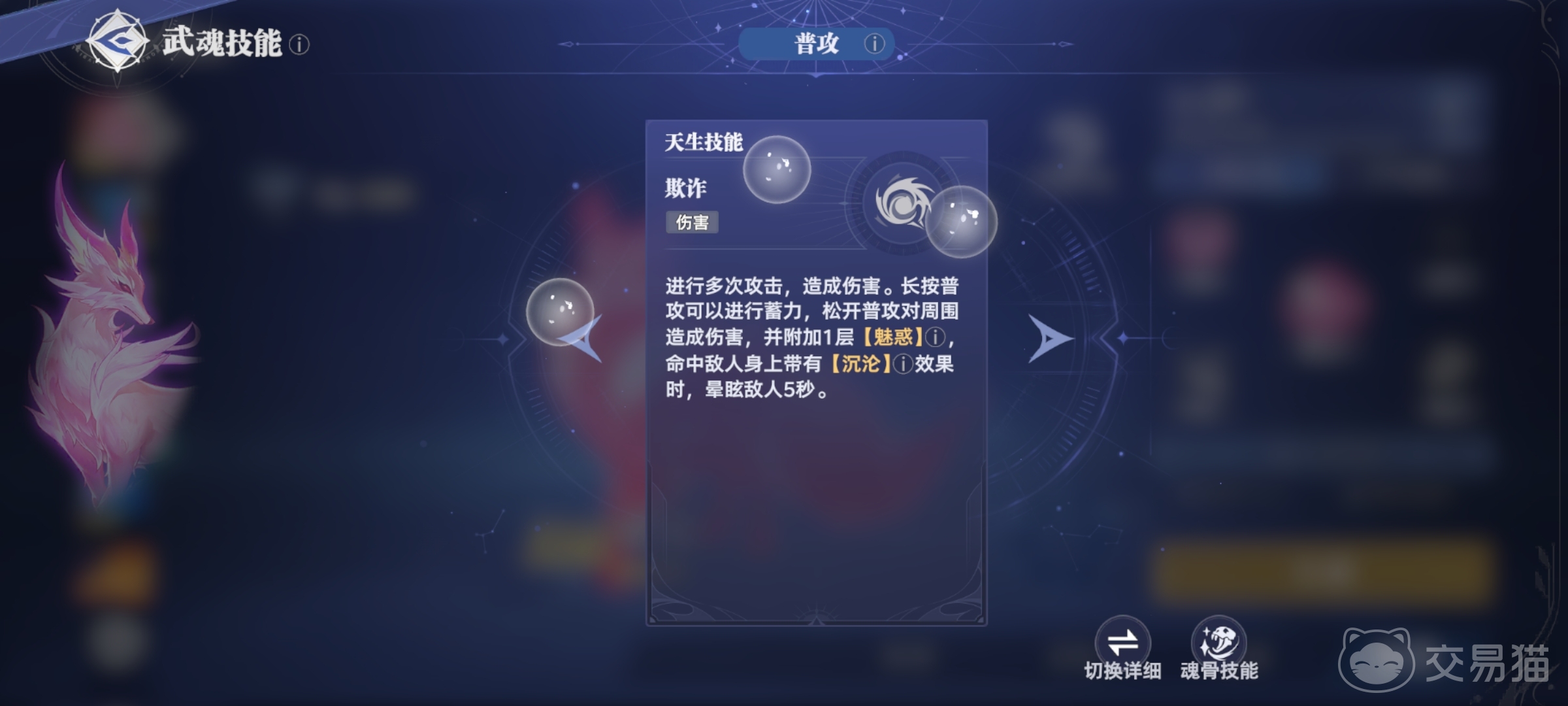 妖狐是一名上限极高、操作感强、战术性突出的控制型角色。普攻“欺诈”在蓄力后能造成范围伤害并附加【魅惑】,若命中处于【沉沦】状态的敌人,还能造成长达5秒的晕眩,为后续控制创造机会。