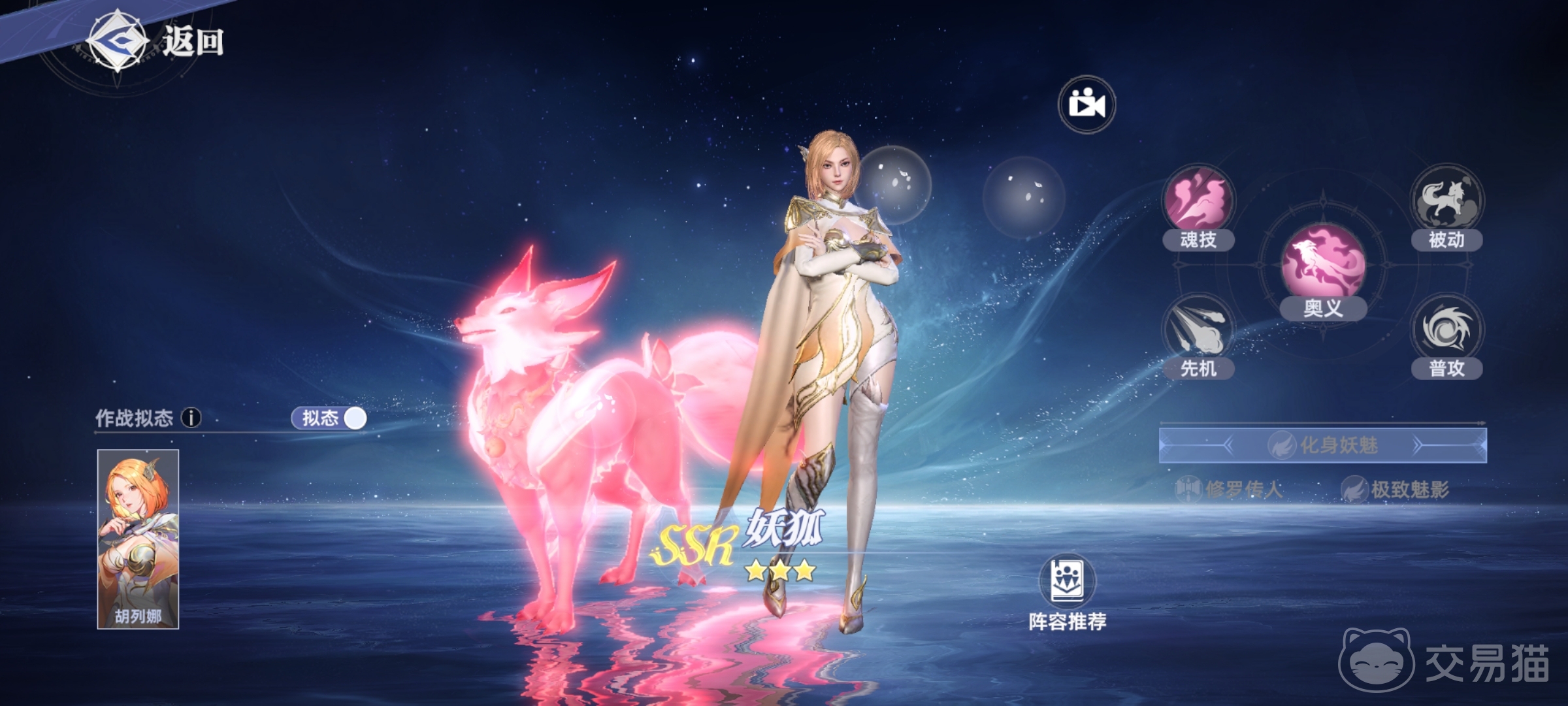 阵容推荐:妖狐 + 昊天锤 + 肉骨兔 + 月刃