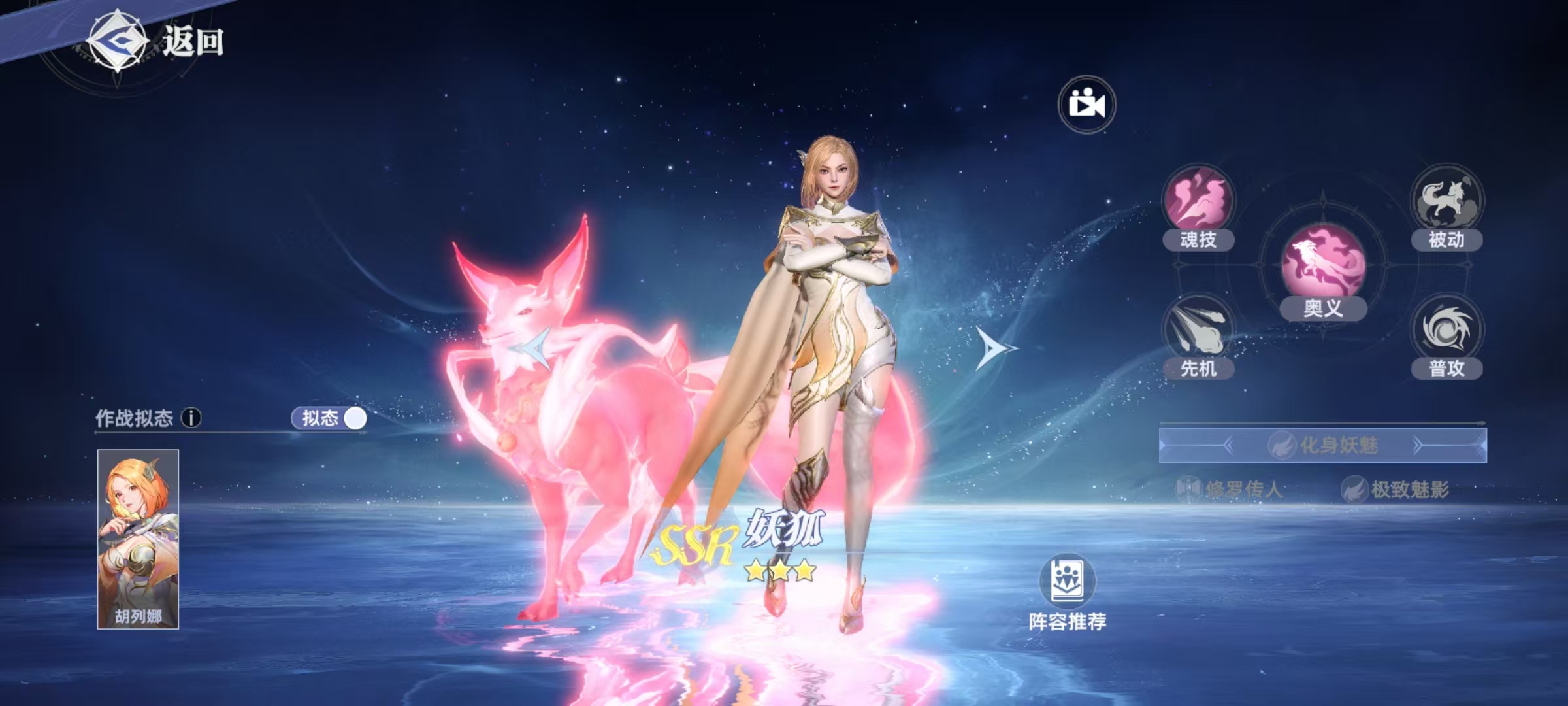 奇茸通天菊是属于后台输出类型,是这套阵容中的第二输出,它自身的特点是奥义技能可以在7秒内,不断对随机目标造成伤害,魂技是向前方进行连续快速攻击,并附加闪光效果。妖狐具有控制能力,自身的奥义技能可对周围敌人造成伤害并附加魅惑,持续时间内将间歇进入隐身状态,并创造一个幻象。所有敌人都会进入到心碎状态。心碎状态是很重要的一个效果,持续5秒钟,期间受到20%的控制易伤,每次受到重伤,都会提升10%,所以和重伤流搭配起来非常妥当。