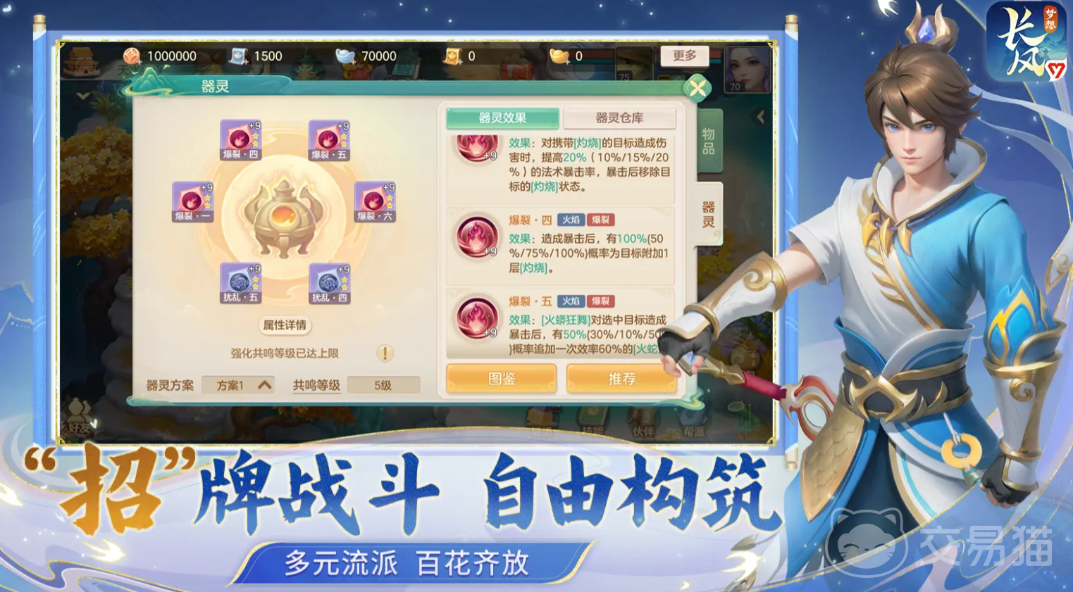 器灵会被分为流派和通用两种,不仅能给大家带来基础属性加成,还能带来强力的特殊效果,随着等级的提升大家最多可以带上6个器灵一起战斗,这其中必须要带上4个流派的和2个通用,大家可以通过点击了解它们的能力后选择合适的搭配方案,每一个器灵都可以进行升级,升级不仅会加强属性和特殊效果,还会增加词条的数量,有概率获得更多增益效果,而升级需要花费器灵经验石,这个的获取方式为将其他不需要的器灵熔炼,这样获得经验石,最后总体获取到的属性会和熔炉器灵的等级和品质相关。
