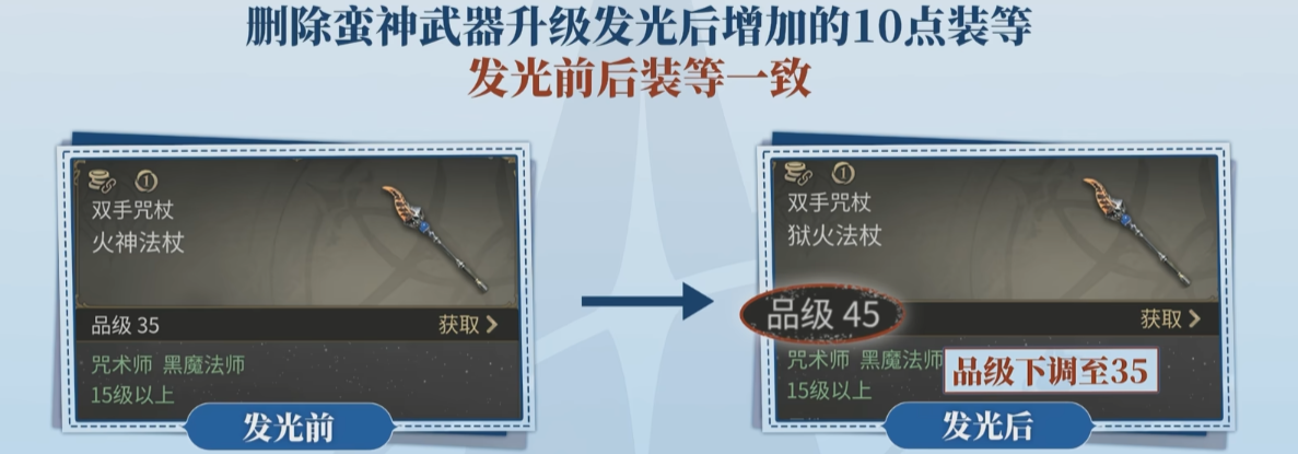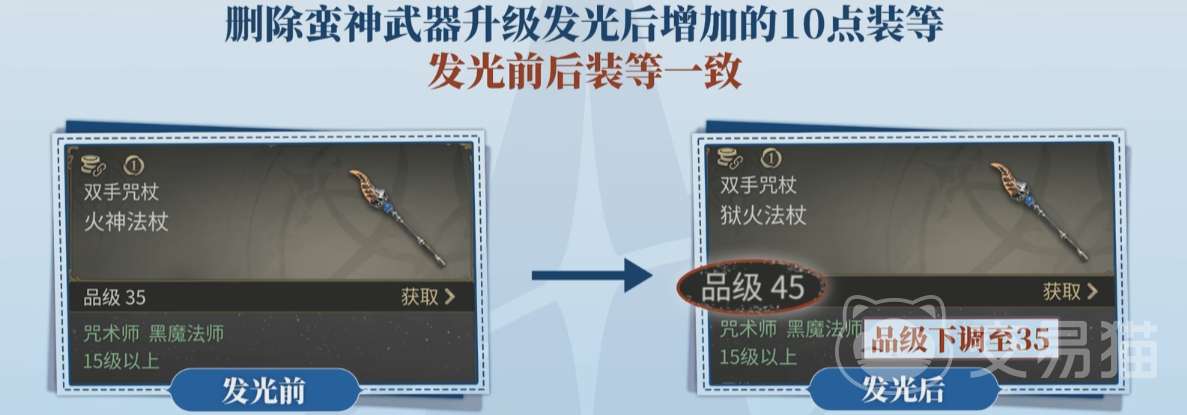 然后删除了蛮神武器升级发光后增加的10点装等,现在发光前后装等一致。而且官方也承诺不做数值付费。情感动作也改成了出生自带,美容师票据改成了1000金币一次,其中几种套装的价格也是从68元改成了6元。
