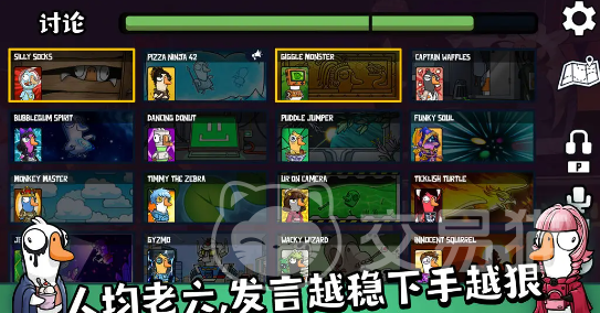 游戏中也会分成多个不同的阵营,每一个不同的阵营都会拥有属于自己的目的,游戏的玩法是比较丰富的,有经典模式,有霸王餐模式,还有轮轴选角模式。每种不一样的模式都会具备独特的特色,例如在经典的模式中,就需要尽快的将所有的鹅杀掉,然后完成所有的任务,并且一定要通过投票的方法把所有的鸭子全部都逐出去。