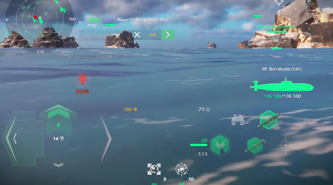 潜艇专用鱼雷:可以搭配096型的潜艇射程是20公里,并且速度为55节。它搭配声纳浮标还能够预判走位,在游戏中专打航母和战列舰。